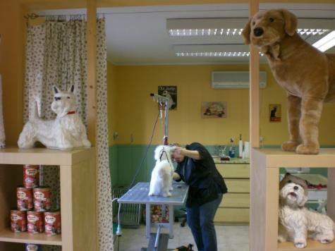 Das ist der Hundesalon von aussen. Nach Betreten erwartet Sie und Ihren lieben vierbeinigen Begleiter ein Empfangsbereich, sowie ein heller und großzügiger Arbeitsbereich.